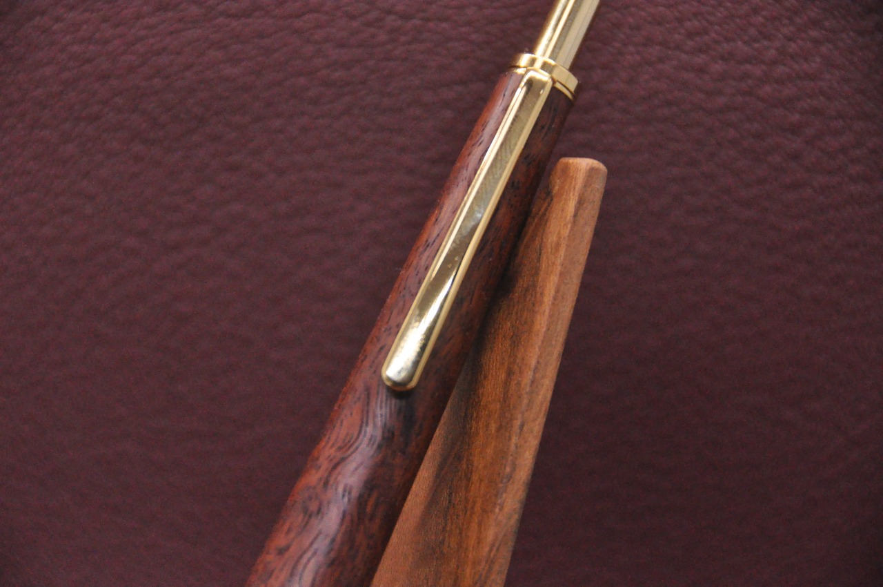 今回のシャーペンは本花梨のトラ杢です。花梨よりも紅く、においがあるのが特徴です。